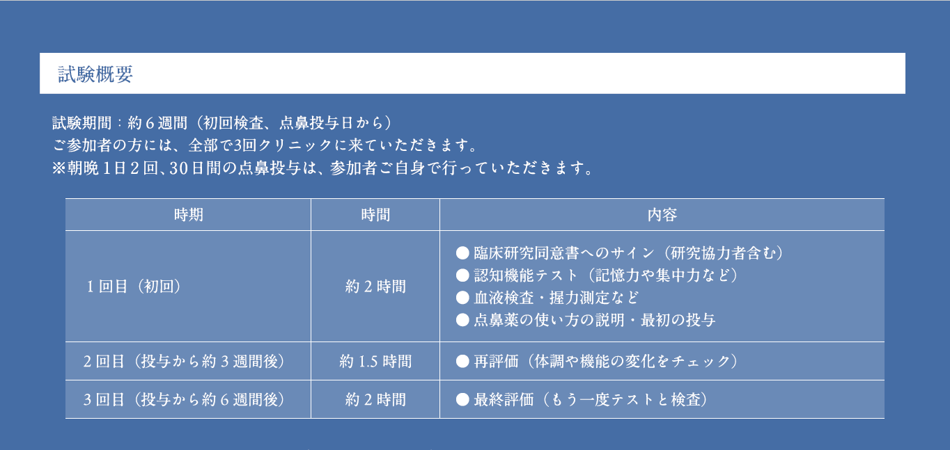 事前検診1回、本試験1回の計2回ご来場していただきます。